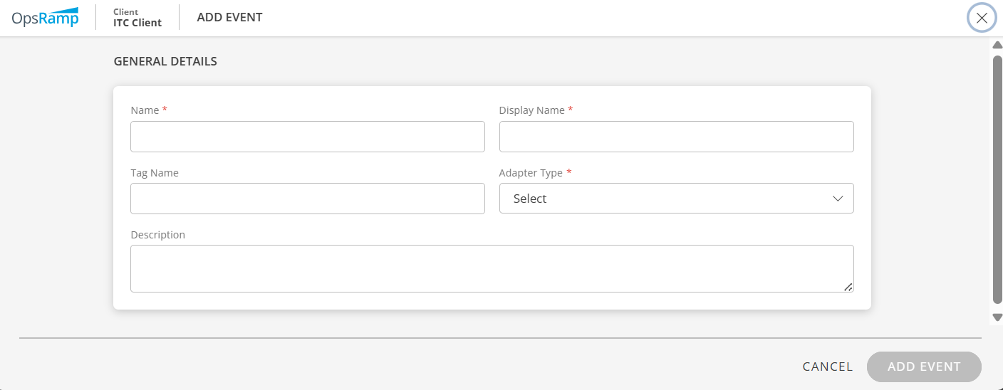 3. In the Events tab, click +ADD. The ADD EVENT page is displayed.
