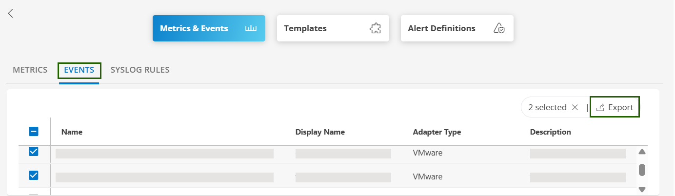 2. Select the event(s) and click Export.