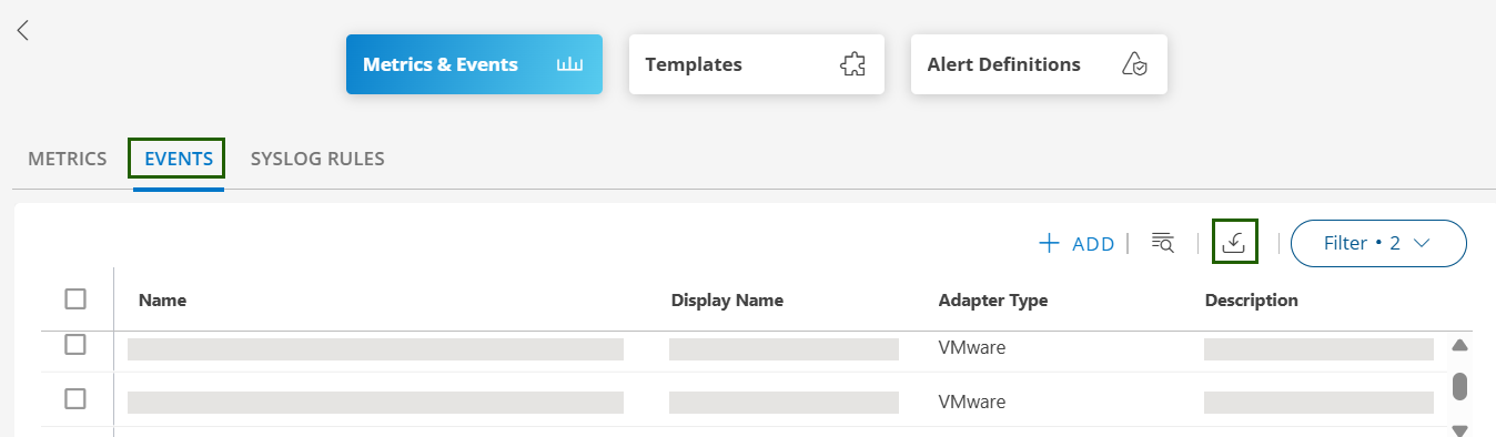 1. In the Events tab, click the Import icon and then click Upload.